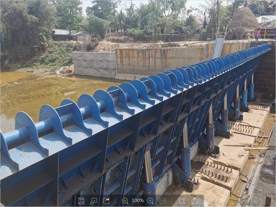 工程介紹:本工程是孟加拉EPC試點(diǎn)項(xiàng)目,受到當(dāng)?shù)卣母叨戎匾?。主要用于枯水期升閘蓄水,農(nóng)田灌溉,汛期降閘河道泄洪,保證上游居民人身及財(cái)產(chǎn)安全。