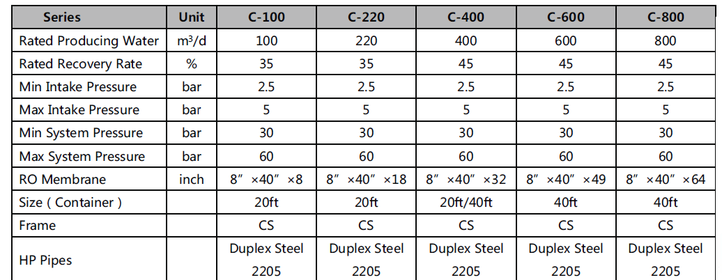 C系列海水淡化設(shè)備特點(diǎn):